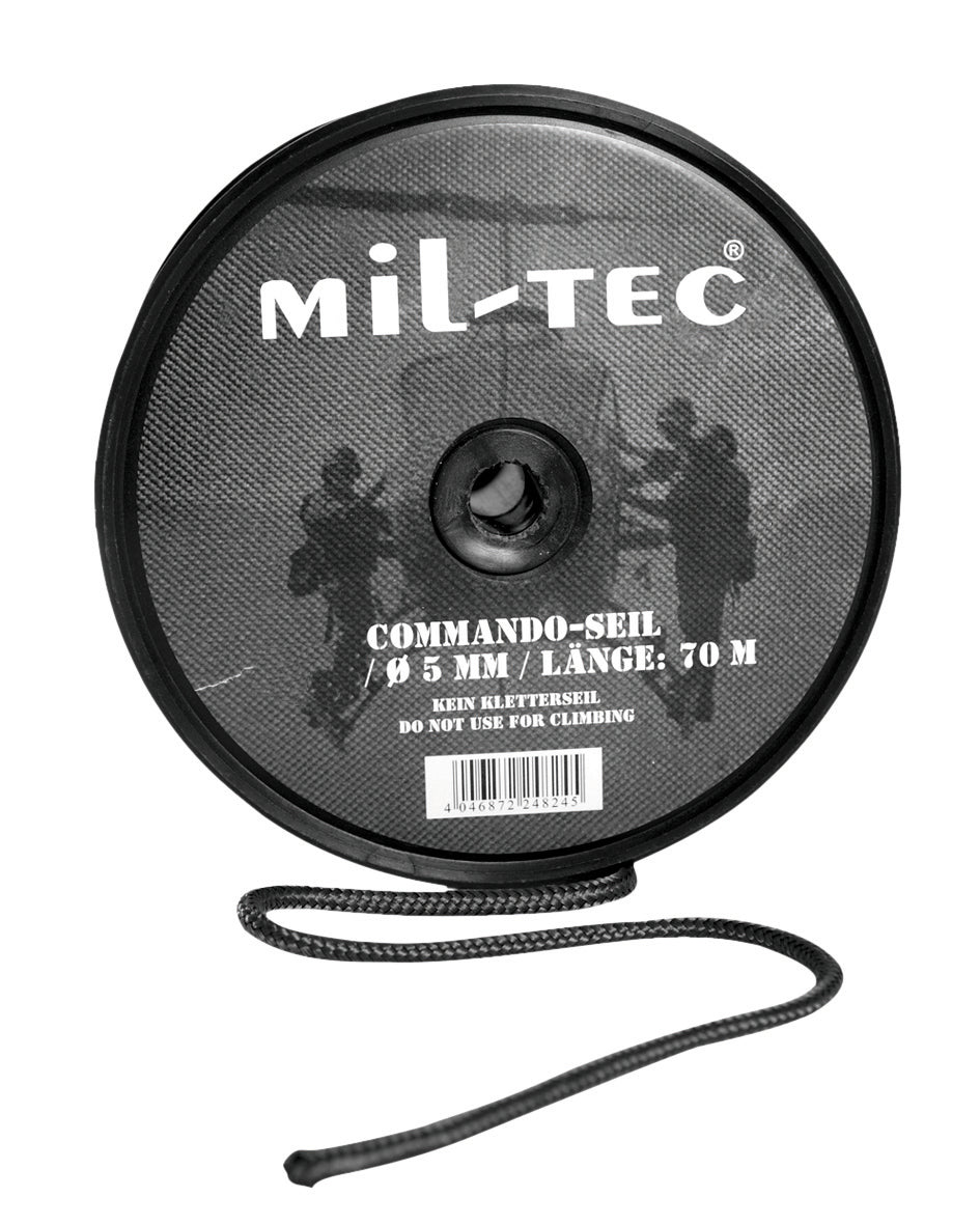 Mil-Tec Cuerda Comando Negra 5mm - Rollo 70 Metros para Outdoor y Uso Profesional