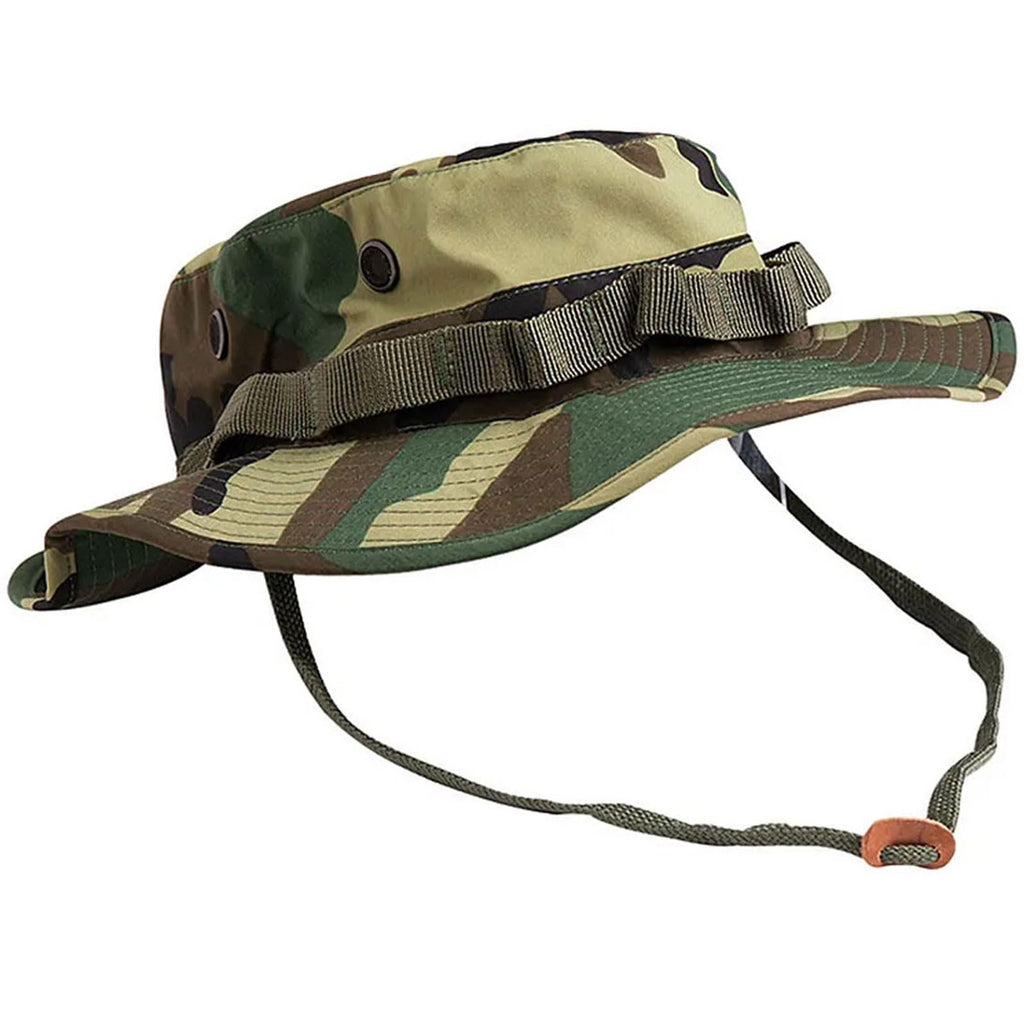 El auténtico patrón de camuflaje Woodland proporciona un mimetismo efectivo en entornos forestales, mientras que su diseño militar clásico estadounidense incluye el característico ala ancha que ofrece protección superior contra los rayos solares y la lluvia. Con un peso de tan solo 98 gramos, este boonie hat destaca por su extrema ligereza, permitiendo un uso prolongado sin fatiga.