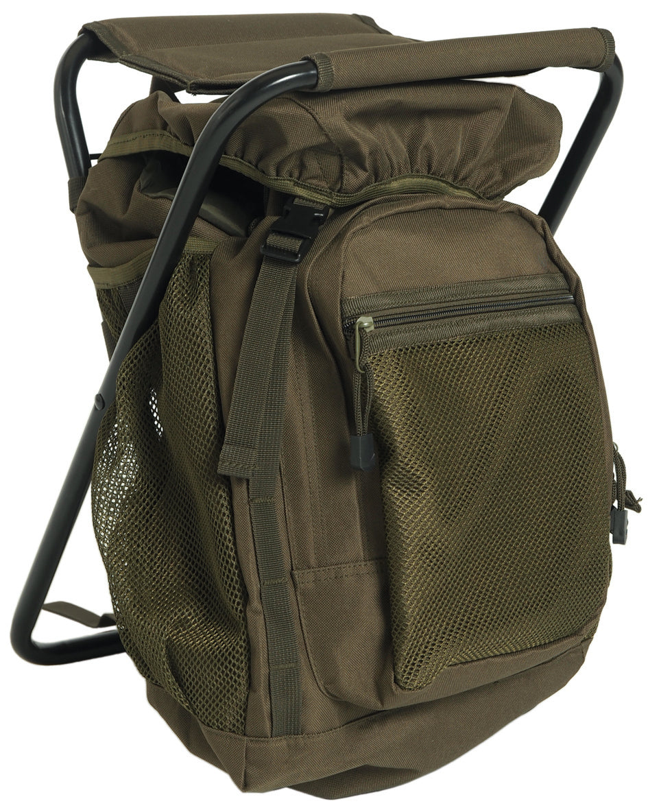 La mochila Mil-Tec Ansitzrucksack en color oliva combina funcionalidad y comodidad para actividades de caza, observación de fauna y aventuras al aire libre. Su diseño innovador integra un taburete plegable que te permite descansar cómodamente durante largas jornadas de espera o observación.