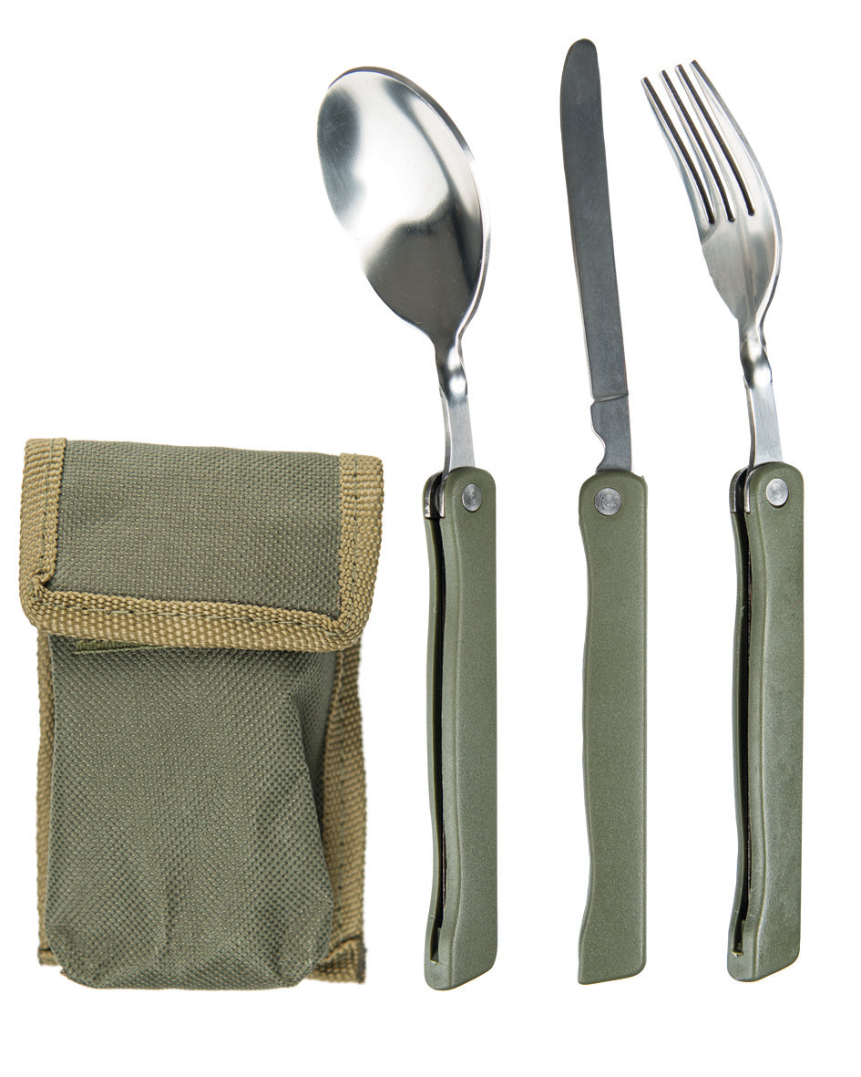 Fabricados con materiales resistentes y duraderos, estos cubiertos están diseñados para soportar el uso intensivo en actividades outdoor. Su acabado en color oliva militar les confiere un aspecto táctico distintivo que combina perfectamente con tu equipamiento de camping y senderismo.