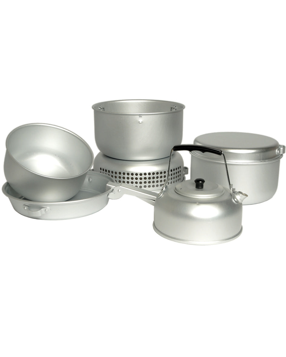 Fabricado con materiales resistentes y duraderos, este conjunto está diseñado para soportar las condiciones más exigentes del exterior. El quemador integrado te permite cocinar de forma autónoma sin depender de otras fuentes de calor, mientras que las 9 piezas incluidas cubren todas tus necesidades culinarias básicas.