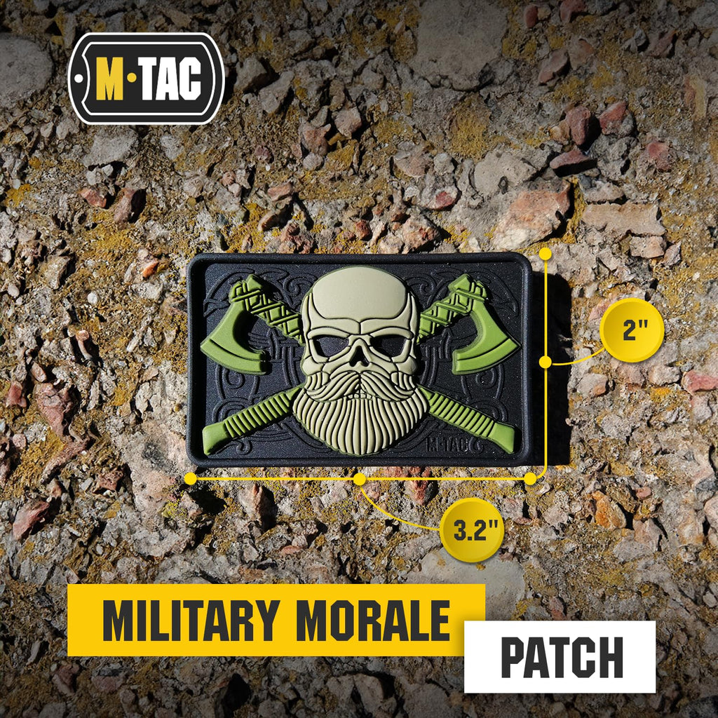 El parche táctico M-Tac de calavera con barba está fabricado en caucho PVC de alta resistencia, diseñado para soportar el uso intensivo sin que el color se desvanezca. Con unas dimensiones de 80 x 25 mm, este parche militar presenta un sistema de cierre de gancho en la parte trasera que permite una fijación segura y fácil en cualquier superficie compatible con velcro. Su construcción en PVC lo hace especialmente duradero y fácil de limpiar, características esenciales para el equipamiento táctico. El diseño de calavera con barba en colores negro y oliva aporta un toque distintivo y personalizado a tu equipo. Es compatible con chalecos tácticos, mochilas, sombreros, gorros, chaquetas y cualquier otro equipamiento que disponga de superficie de velcro. Su tamaño compacto de 3.2 x 1 pulgadas lo hace versátil para múltiples aplicaciones sin añadir peso significativo al equipo.