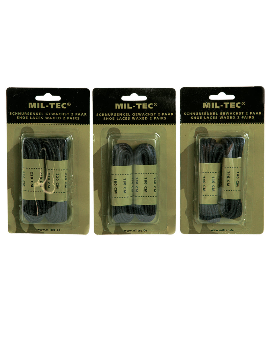 Mil-Tec Cordones Encerados Negros 220cm - Cordones Militares Resistentes para Botas Tácticas