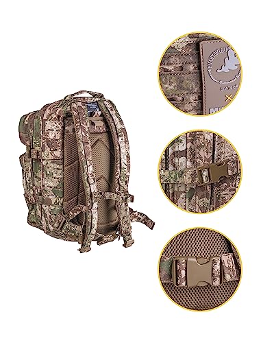Con un peso optimizado de 1,232 kg, esta mochila de asalto combina capacidad de carga con comodidad de transporte. Su diseño ergonómico distribuye el peso de manera eficiente, reduciendo la fatiga durante largas jornadas de uso.