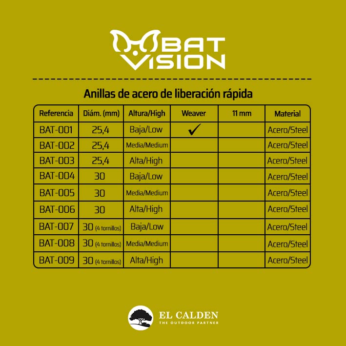Ideal para caza mayor, tiro deportivo y aplicaciones tácticas donde la fiabilidad es fundamental. La BAT Weaver Rapida combina ingeniería de precisión con facilidad de uso, convirtiéndose en el complemento indispensable para tu equipo óptico.