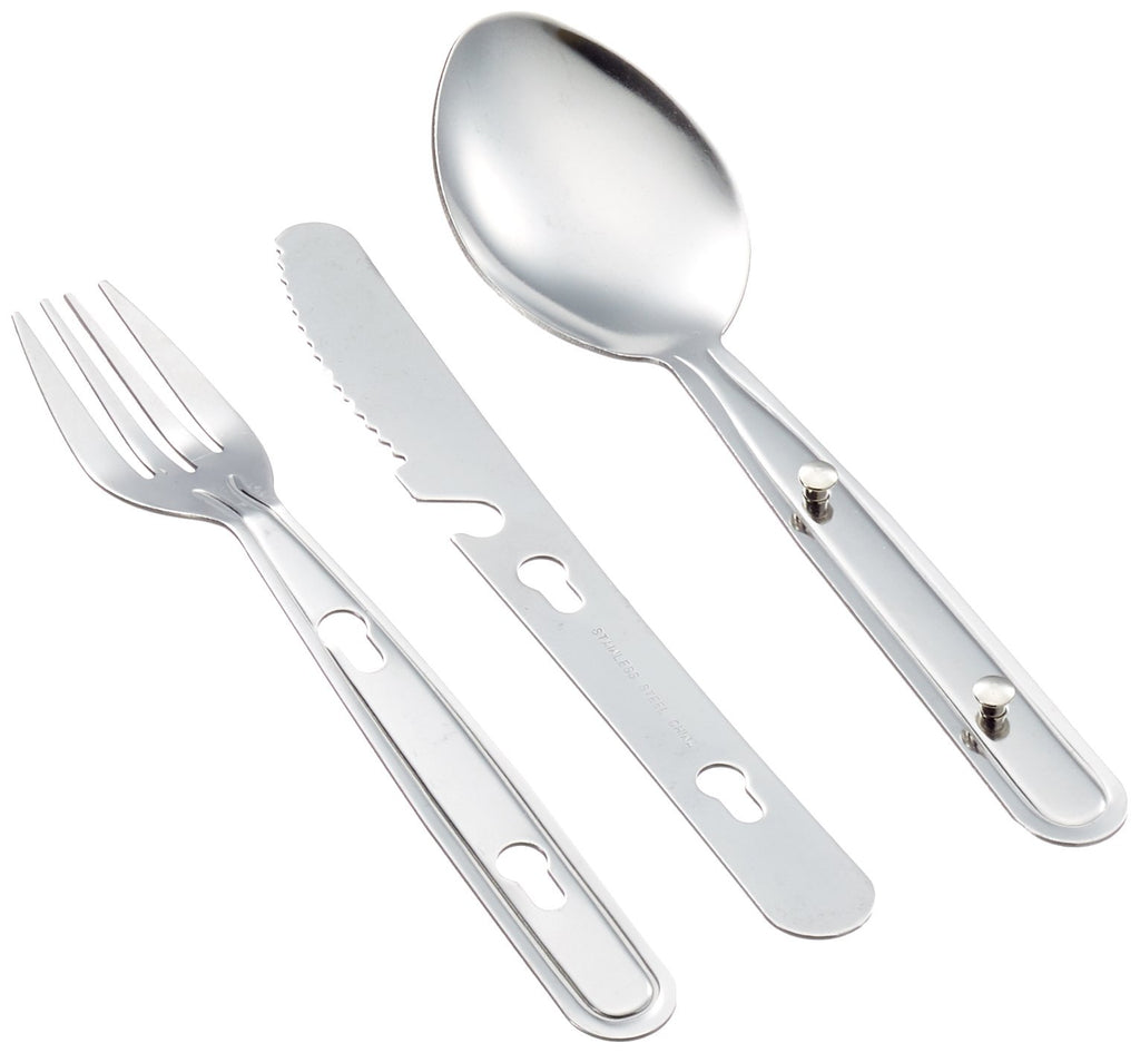 - Kit completo: incluye cuchillo, tenedor y cuchara en un diseño compacto