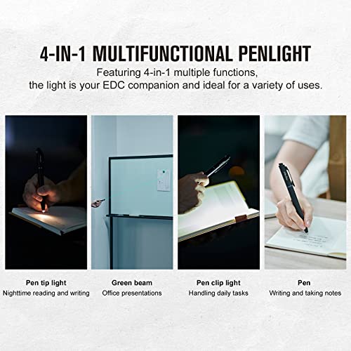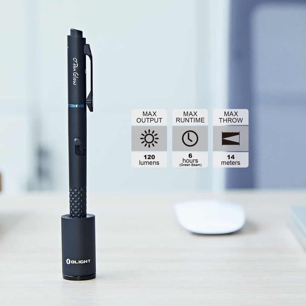 OLIGHT O'Pen Glow - Bolígrafo de luz LED de 120 lúmenes con haz verde, linterna EDC recargable con bolígrafo para escribir, trabajo, aventura, negocios profesionales (negro)