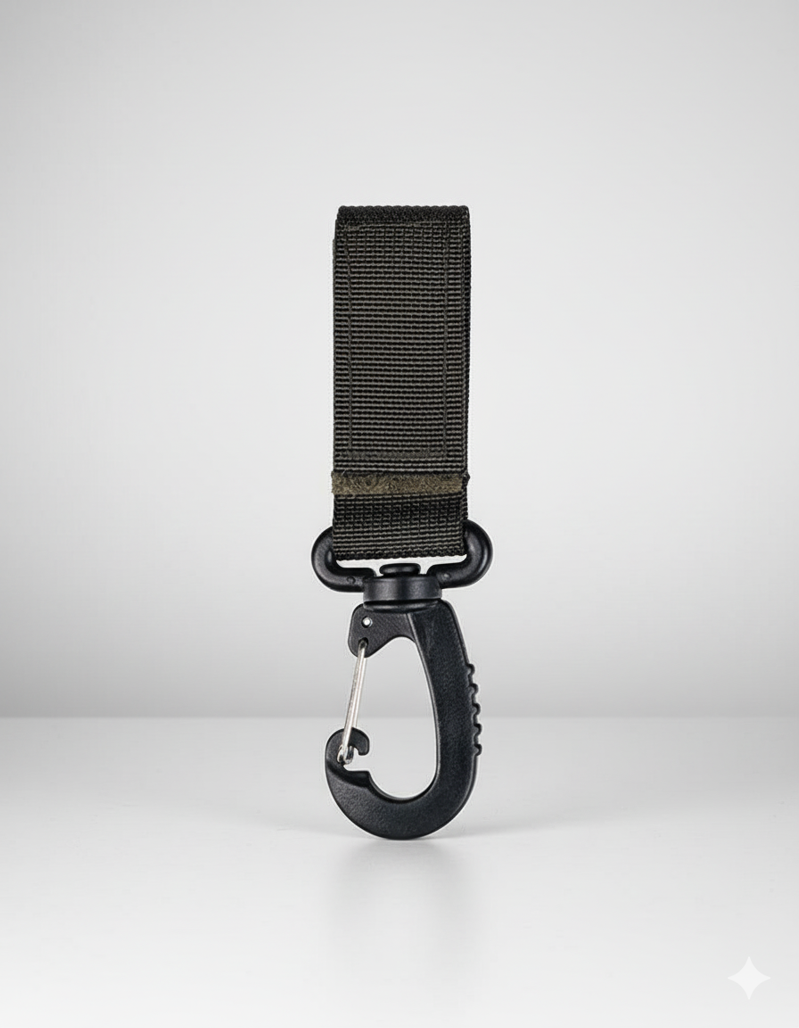 Correa táctica con mosquetón 70 mm color oliva – adaptador de cinturón MOLLE