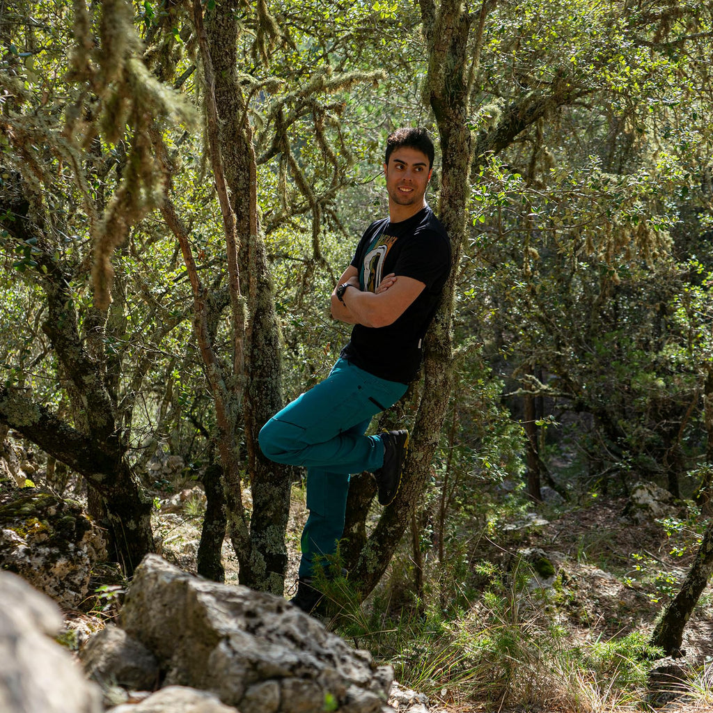 Jeanstrack Pantalón Trekking, Escalada Elástico y Resistente – Pantalón para Senderismo – Rodillas Reforzadas y Bajos Regulables (Turia Verde Ethnic, S)