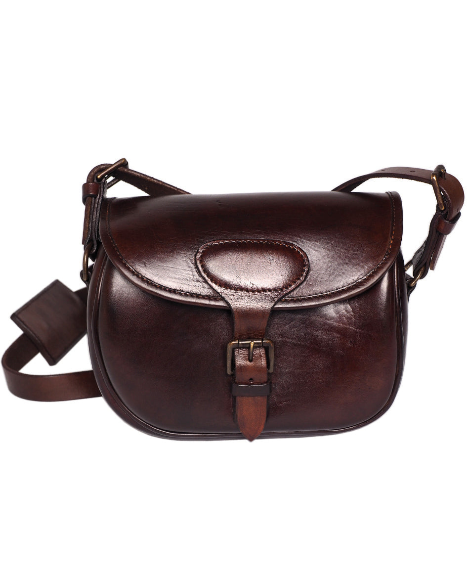 Su diseño ergonómico permite llevarla cómodamente cruzada al pecho o al hombro, distribuyendo el peso de manera equilibrada. El cuero marrón aporta un acabado elegante y atemporal que se adapta tanto a entornos urbanos como rurales.