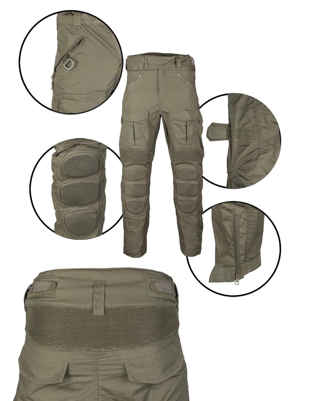 Su diseño ergonómico permite total libertad de movimiento, mientras que su construcción robusta garantiza una larga vida útil incluso en las condiciones más exigentes. El color verde oliva los convierte en una opción versátil tanto para uso táctico como casual.