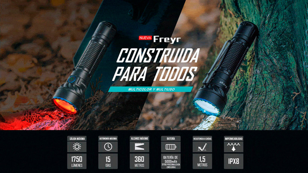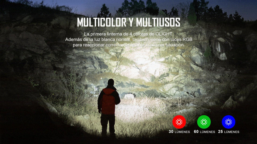 OLIGHT FREYR Linterna Táctica LED 1750 Lúmenes con Luces de Colores Rojo Verde Azul
