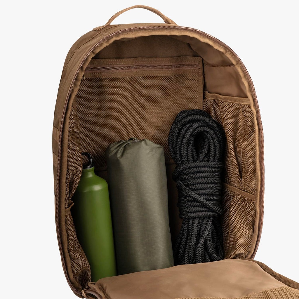 La mochila táctica Highlander HARRIER de 45L está diseñada para profesionales y entusiastas del aire libre que necesitan acceso rápido y organización óptima de su equipo. Su característica apertura clamshell completa permite acceder a todo el contenido sin vaciar la mochila, mientras que el sistema de espalda acolchada de malla de aire garantiza comodidad durante largas jornadas. Fabricada en resistente poliéster 1000D con cremalleras reforzadas No.10 y hebillas Duraflex, ofrece durabilidad excepcional. Incluye múltiples compartimentos: gran bolsillo superior con forro tricot, dos bolsillos frontales amplios, organizador interno desmontable y bolsillos de malla internos. El sistema MOLLE integrado permite personalizar la mochila con accesorios tácticos adicionales. Las correas de hombro y cinturón de cadera acolchados, junto con la correa de pecho ajustable, distribuyen el peso de manera equilibrada. Con un peso de 1,7 kg y dimensiones compactas de 33x20x53 cm, esta mochila versátil se adapta a cualquier entorno, desde misiones tácticas hasta aventuras de senderismo.