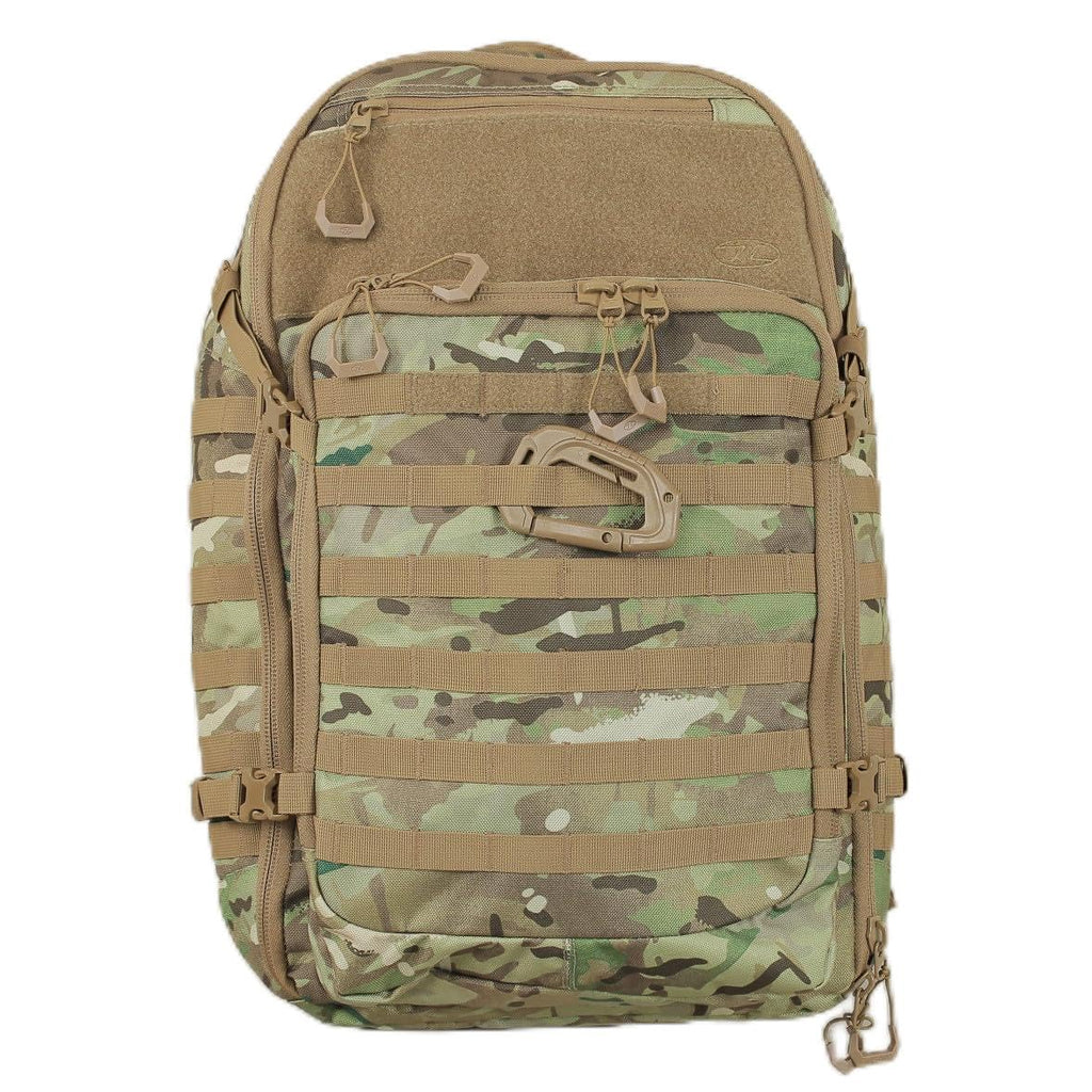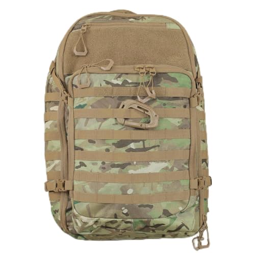La mochila táctica Highlander HARRIER combina funcionalidad militar con comodidad excepcional. Su diseño clamshell de apertura completa permite acceso rápido y total a tu equipo, mientras que su construcción en poliéster 1000D con cremalleras heavy duty No.10 garantiza resistencia extrema. El sistema de espalda acolchada de malla de aire proporciona ventilación y comodidad durante largas jornadas. Incluye múltiples compartimentos: compartimento principal de 45L, bolsillo superior con forro tricot, dos bolsillos frontales grandes y bolsillos internos de malla. El organizador interno desmontable facilita la clasificación del equipo. Las correas MOLLE permiten personalizar la mochila con accesorios tácticos adicionales. Su cinturón de cadera acolchado, correas de hombro ajustables y correa de pecho distribuyen el peso uniformemente. Compatible con sistemas de hidratación y portátiles, es ideal para actividades tácticas, camping, senderismo y uso profesional.