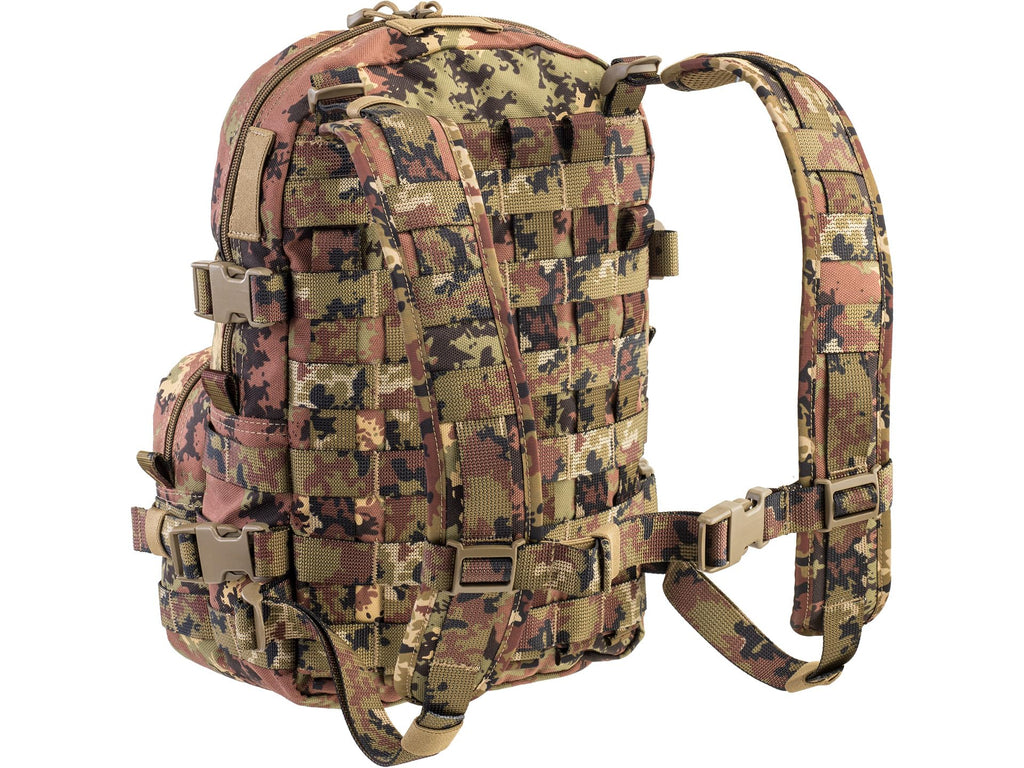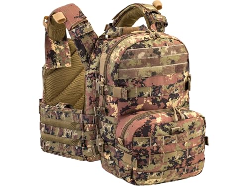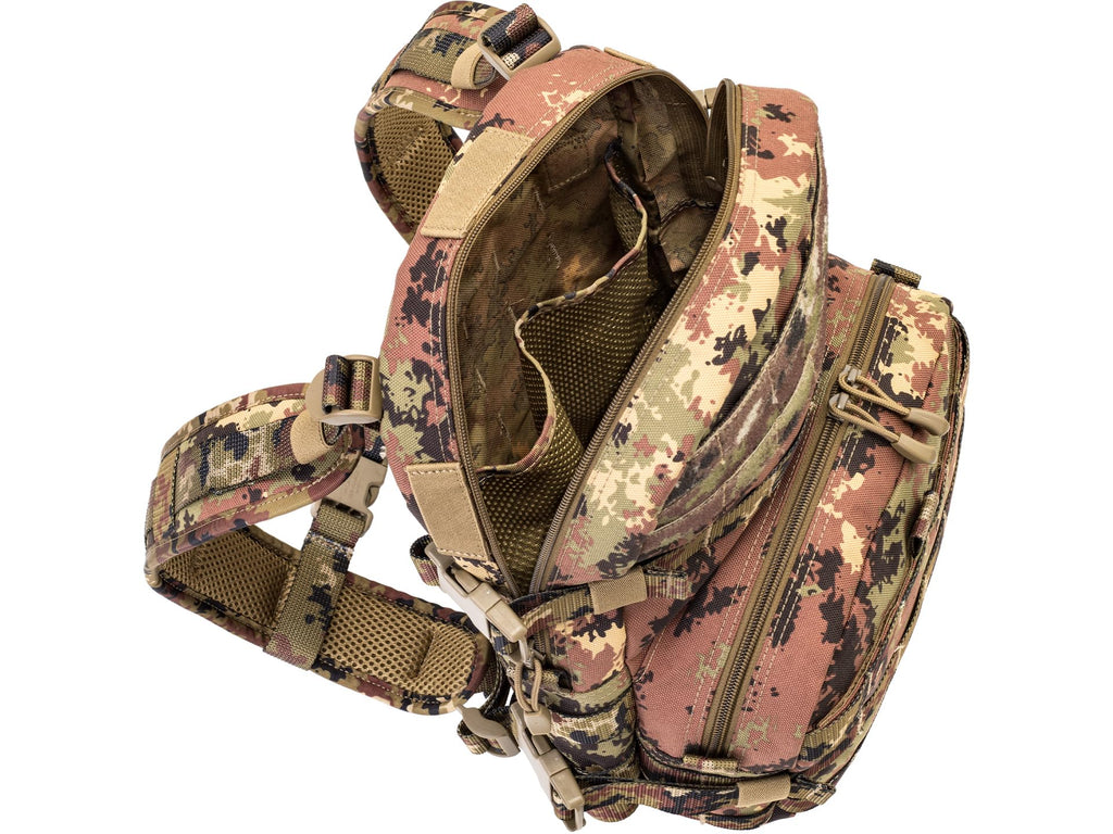 Fabricada con materiales resistentes de alta calidad, esta mochila táctica ofrece la capacidad ideal para excursiones de un día o como equipaje de mano. Su patrón de camuflaje Vegetato Italiano proporciona excelente mimetización en entornos mediterráneos y boscosos.