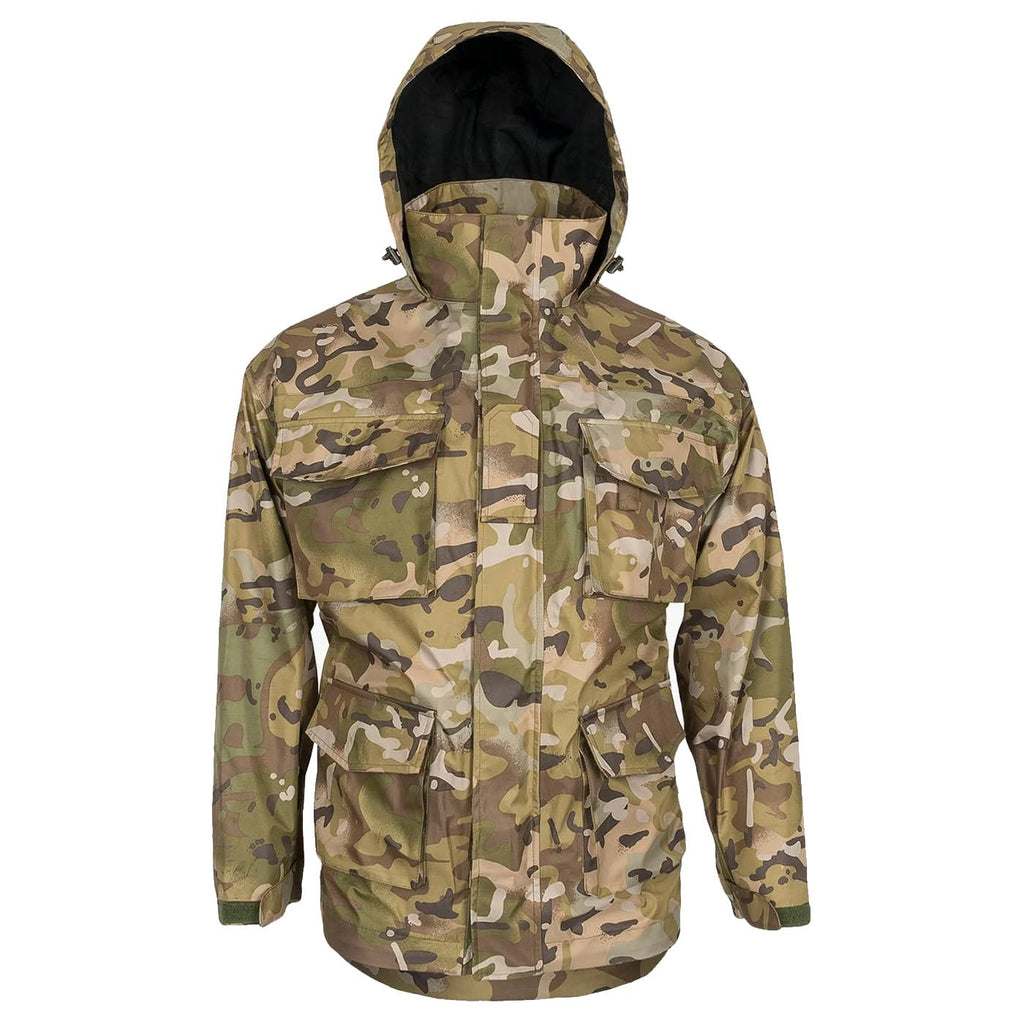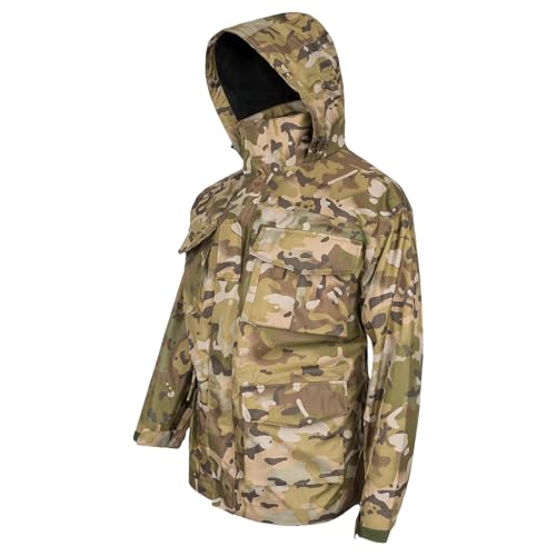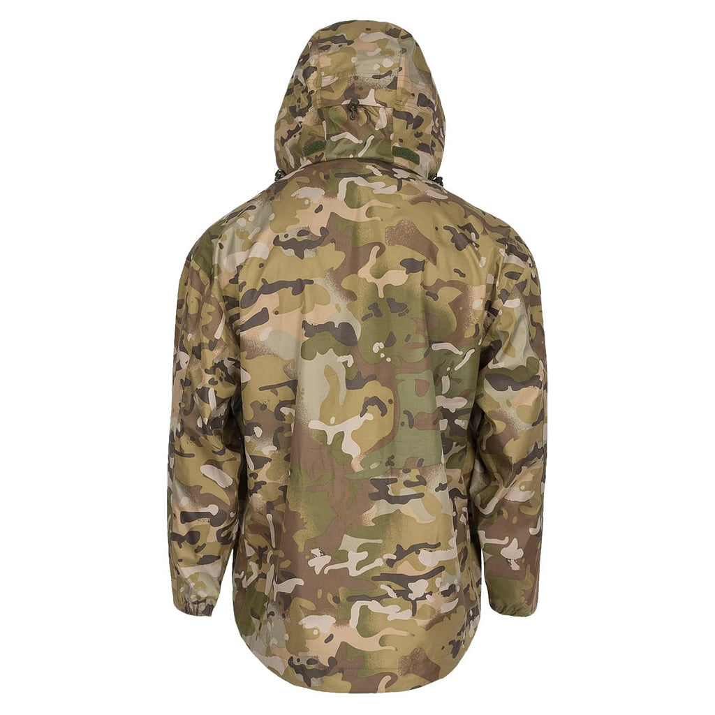 La chaqueta impermeable Highlander Typhoon está diseñada para ofrecer una protección excepcional contra el viento y la lluvia. Fabricada con tejido AB-TEX Tri-Max, esta chaqueta presenta una capa exterior resistente y una clasificación de impermeabilidad de 5,000 mm, asegurando que te mantengas seco incluso en las condiciones más adversas. Su transpirabilidad de 5,000 g/m² permite una adecuada gestión de la humedad, ideal para actividades al aire libre como senderismo, trabajo operativo o entrenamiento. La chaqueta cuenta con costuras completamente selladas y cremalleras de ventilación en las axilas, que proporcionan un flujo de aire adicional cuando lo necesitas. Además, su capucha ajustable con pico de alambre y puños elásticos garantizan un ajuste seguro y cómodo. Con un diseño en camuflaje HMTC, es compatible con MTP, lo que la convierte en una opción práctica y funcional para quienes buscan un abrigo duradero y de alto rendimiento.