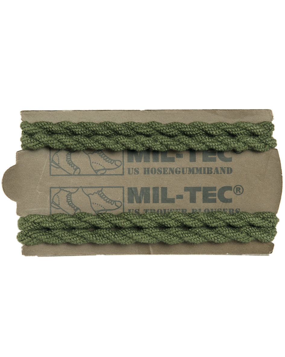 Las gomas elásticas para pantalones Mil-Tec en color verde oliva son el complemento esencial para mantener tus pantalones militares, de trabajo o outdoor en perfecta posición durante las actividades más exigentes.