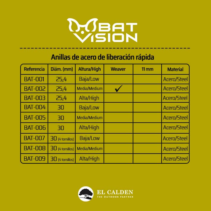 Su sistema de liberación rápida permite el desmontaje y montaje de la óptica de forma ágil y precisa, manteniendo siempre el punto de mira. La altura media proporciona el equilibrio perfecto entre comodidad de uso y compatibilidad con diferentes tipos de ópticas.