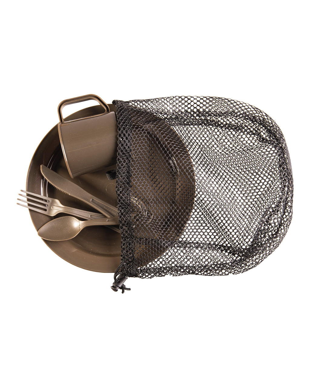 El set de camping Mil-Tec es la solución completa para tus aventuras al aire libre. Este conjunto incluye plato, taza y cubiertos fabricados en plástico resistente de alta calidad en color verde oliva militar.