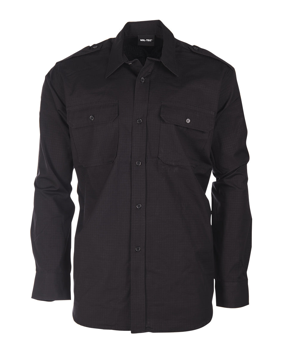 La camisa táctica Mil-Tec Feldhemd Ripstop en negro está diseñada para profesionales que exigen resistencia y funcionalidad en su ropa de trabajo. Fabricada con tejido ripstop de alta calidad, esta prenda ofrece una durabilidad excepcional frente al desgarro y al uso intensivo.