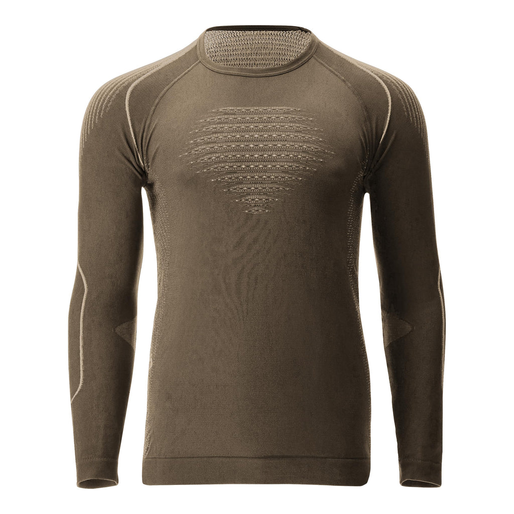 Su diseño de manga larga en color Coyote/Grey proporciona camuflaje efectivo y versatilidad en diferentes entornos operativos. La construcción técnica permite una excelente transpirabilidad y gestión de la humedad, manteniendo el cuerpo seco durante actividades intensas.