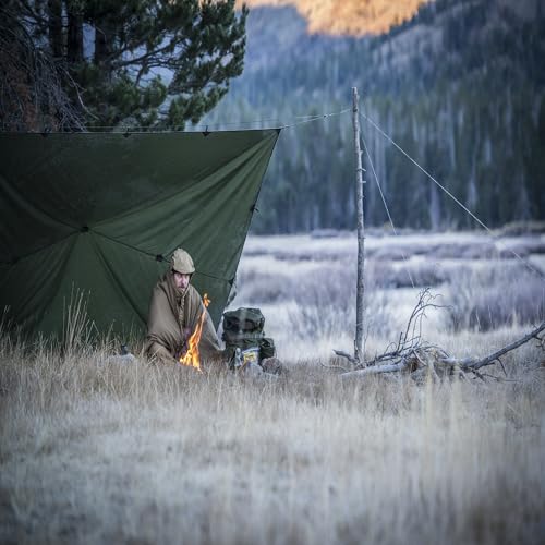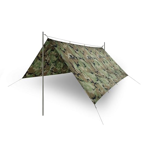 Sus 19 puntos de fijación estratégicamente distribuidos te permiten crear múltiples configuraciones: desde un refugio básico contra la lluvia hasta complejas estructuras de campamento base. La superficie de 9 metros cuadrados proporciona cobertura amplia para ti y tu equipo, siendo ideal para actividades de bushcraft, supervivencia, camping táctico o expediciones de montaña.